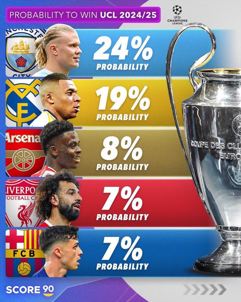 - Реал Мадрид: 15-кратные обладатели кубка никогда не остаются в стороне от борьбы. Их опыт и харизма — страшная сила, и некоторые прогнозы отдают им победу или место в финале.