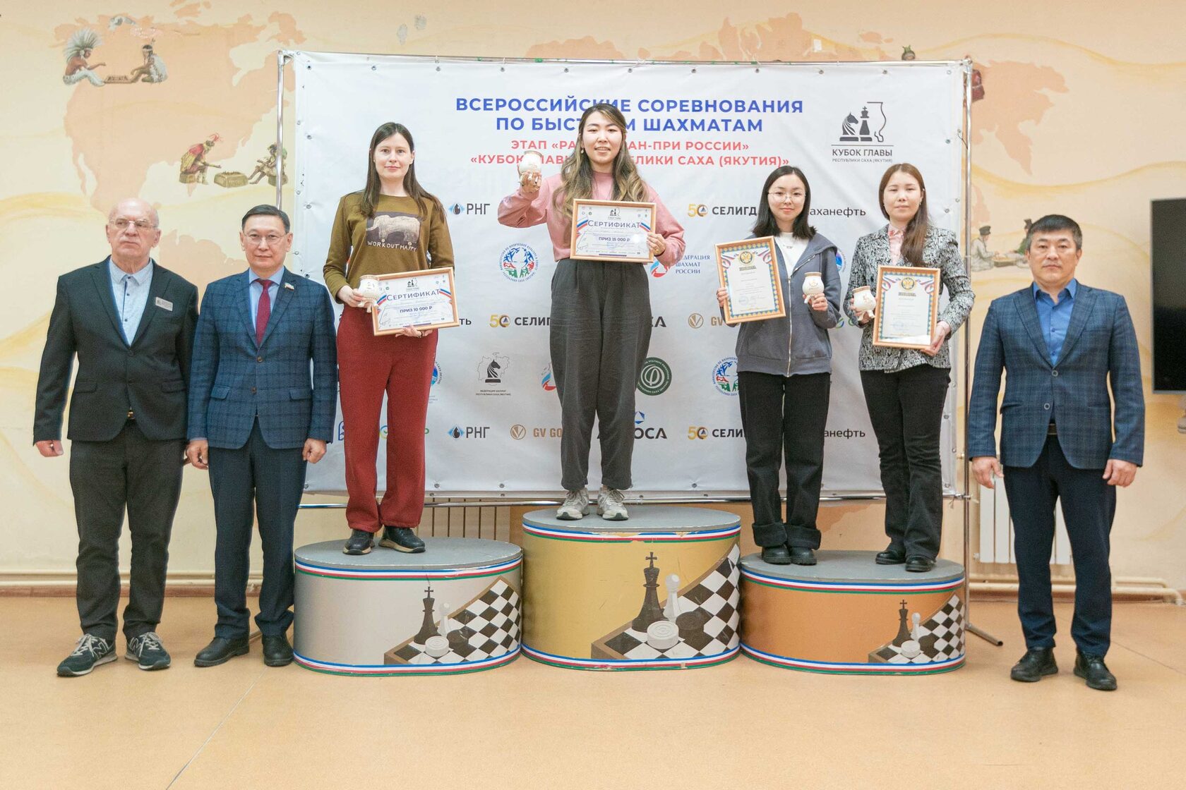 Торжественная церемония закрытия прошла под руководством президента Федерации шахмат РС (Я) Владимира Егорова, главного судьи Михаила Крюкова и первого заместителя руководителя Управления физической культуры и спорта РС (Я) Андрея Игнатьева.