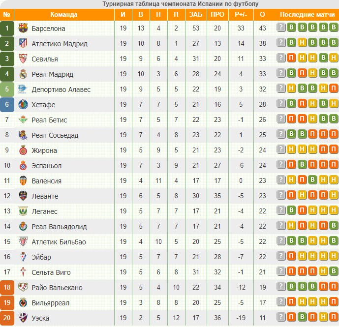 Турнирная таблица Ла Лиги