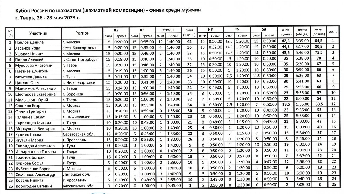 С 17 по 20 апреля в Ижевске состоялся всероссийский турнир по решению шахматных композиций «Турнир памяти С.Ф. Ощепкова», являвшийся вторым этапом Кубка России по шахматной композиции среди мужчин.