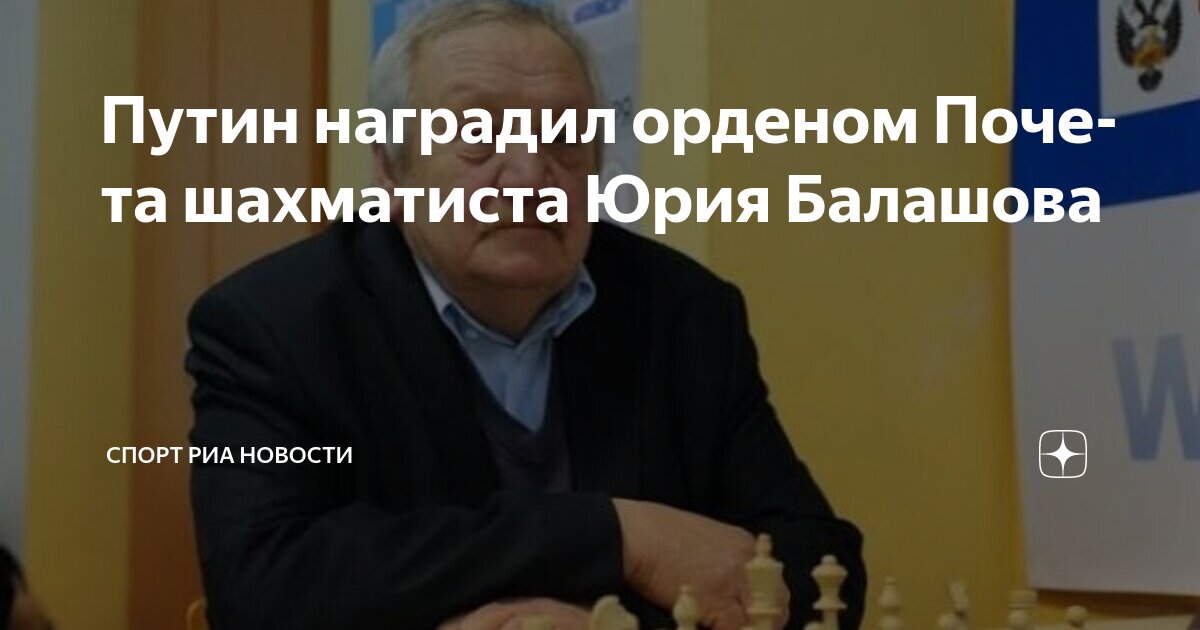 Известный шахматный гроссмейстер, заслуженный тренер СССР, а также многолетний секундант чемпиона мира Анатолия Карпова, победитель и призер многочисленных международных соревнований Юрий Балашов был награжден орденом Почета.